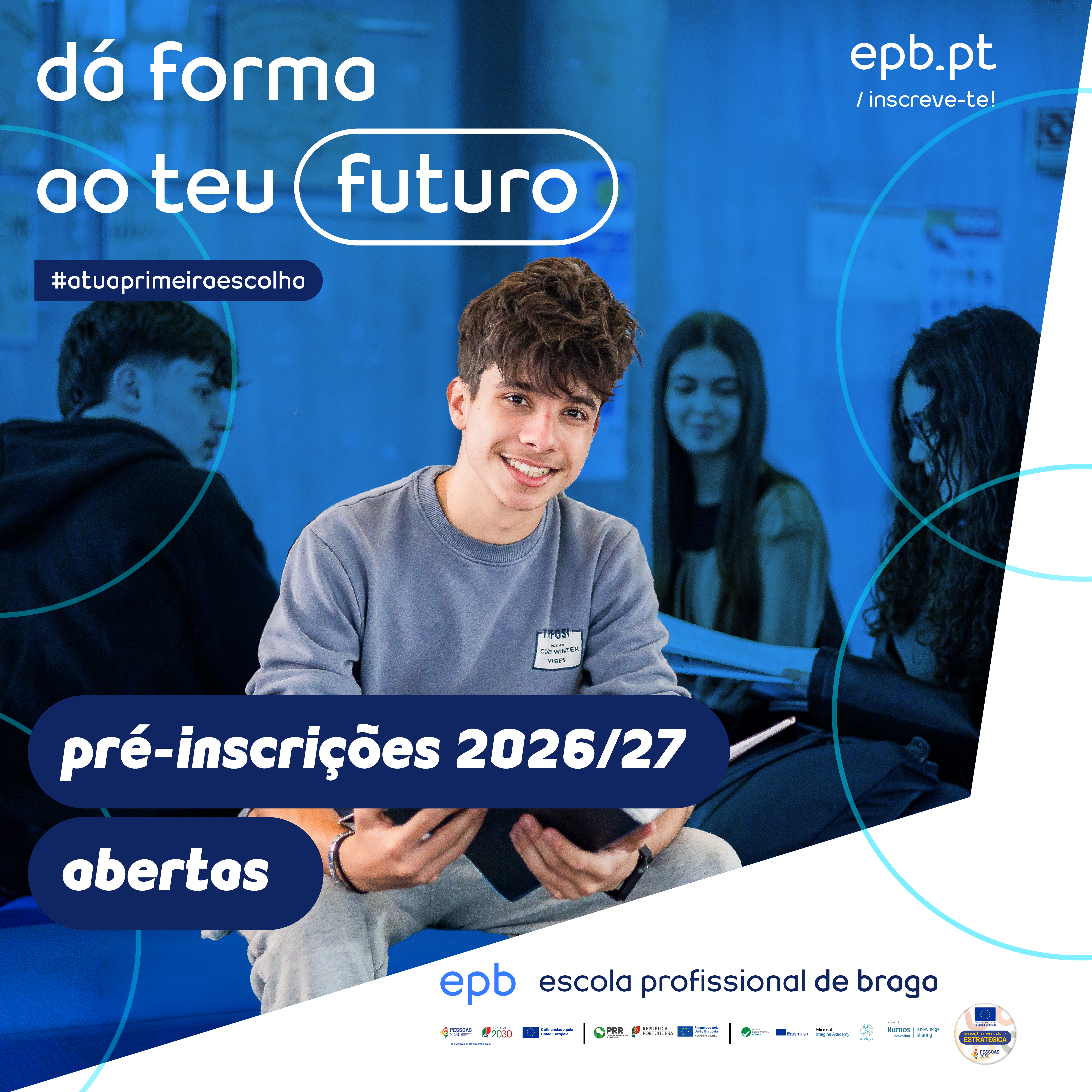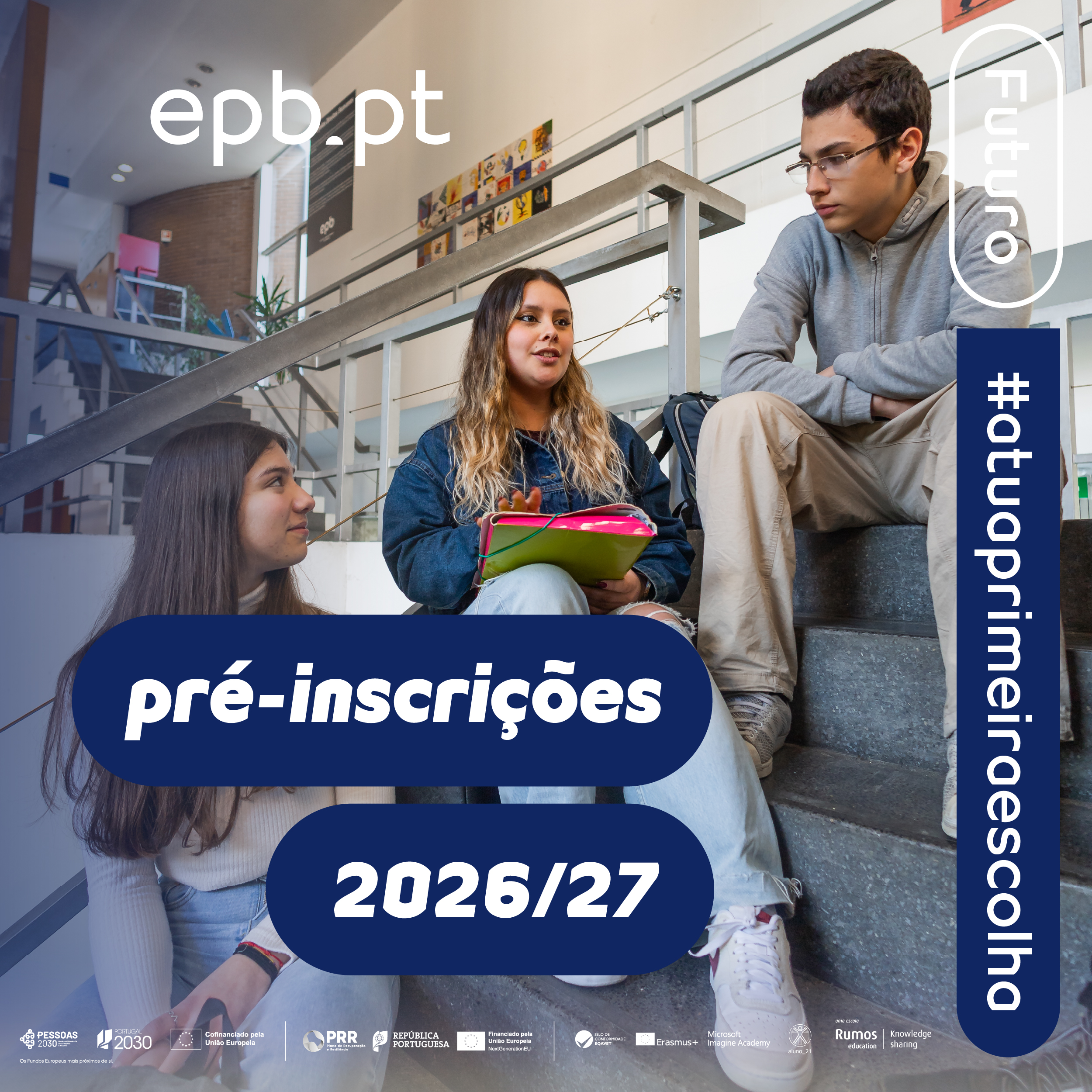 Conhece a epb onde para além de terminares o 12º ano, podes seguir para o Ensino Superior ou entrar diretamente no mercado de trabalho. Sabe mais sobre todos os cursos disponíveis, saídas profissionais, benefícios, subsídios e estágios e experiências internacionais no nosso site ou entra em contacto connosco!