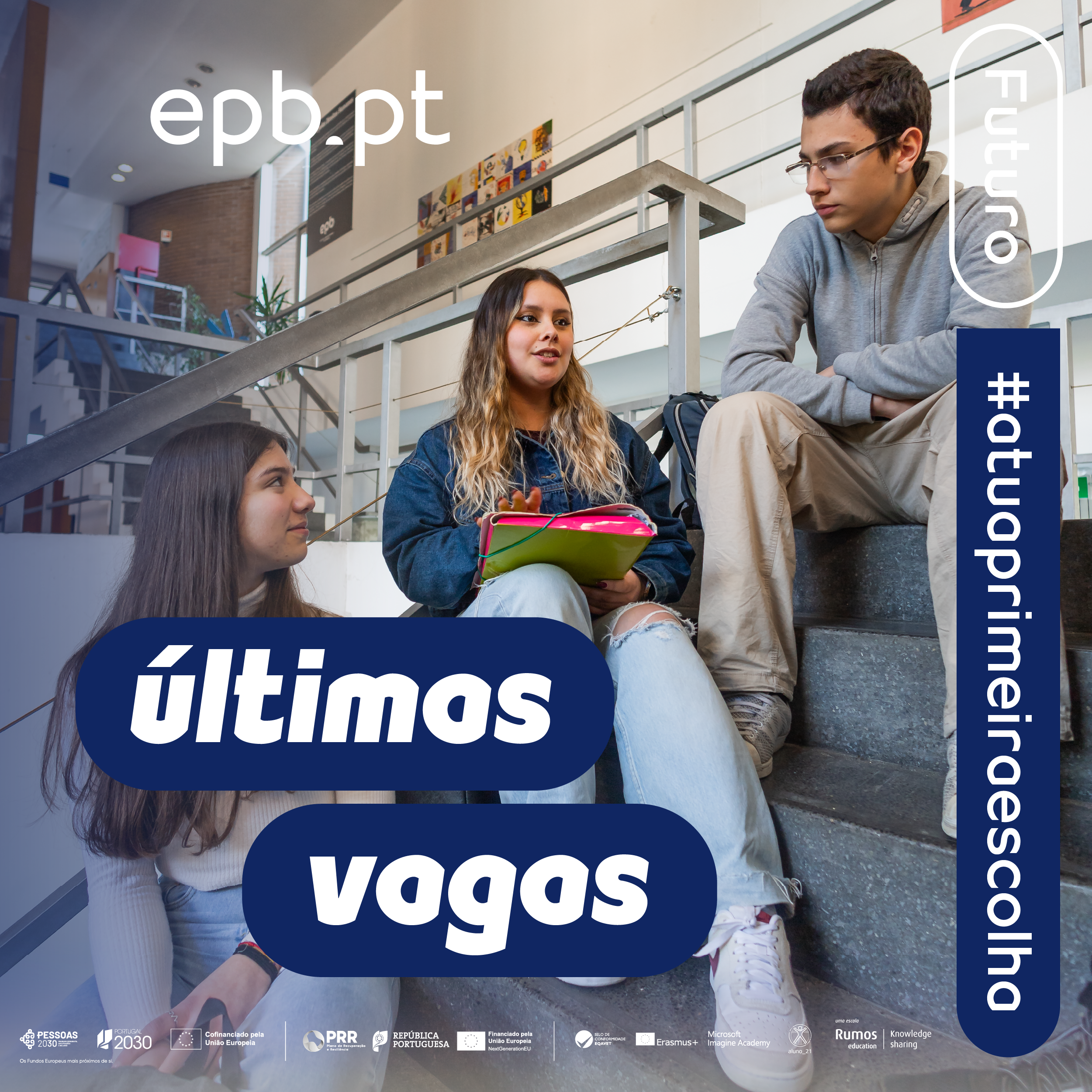 Conhece a epb onde para além de terminares o 12º ano, podes seguir para o Ensino Superior ou entrar diretamente no mercado de trabalho. Sabe mais sobre todos os cursos disponíveis, saídas profissionais, benefícios, subsídios e estágios e experiências internacionais no nosso site ou entra em contacto connosco!